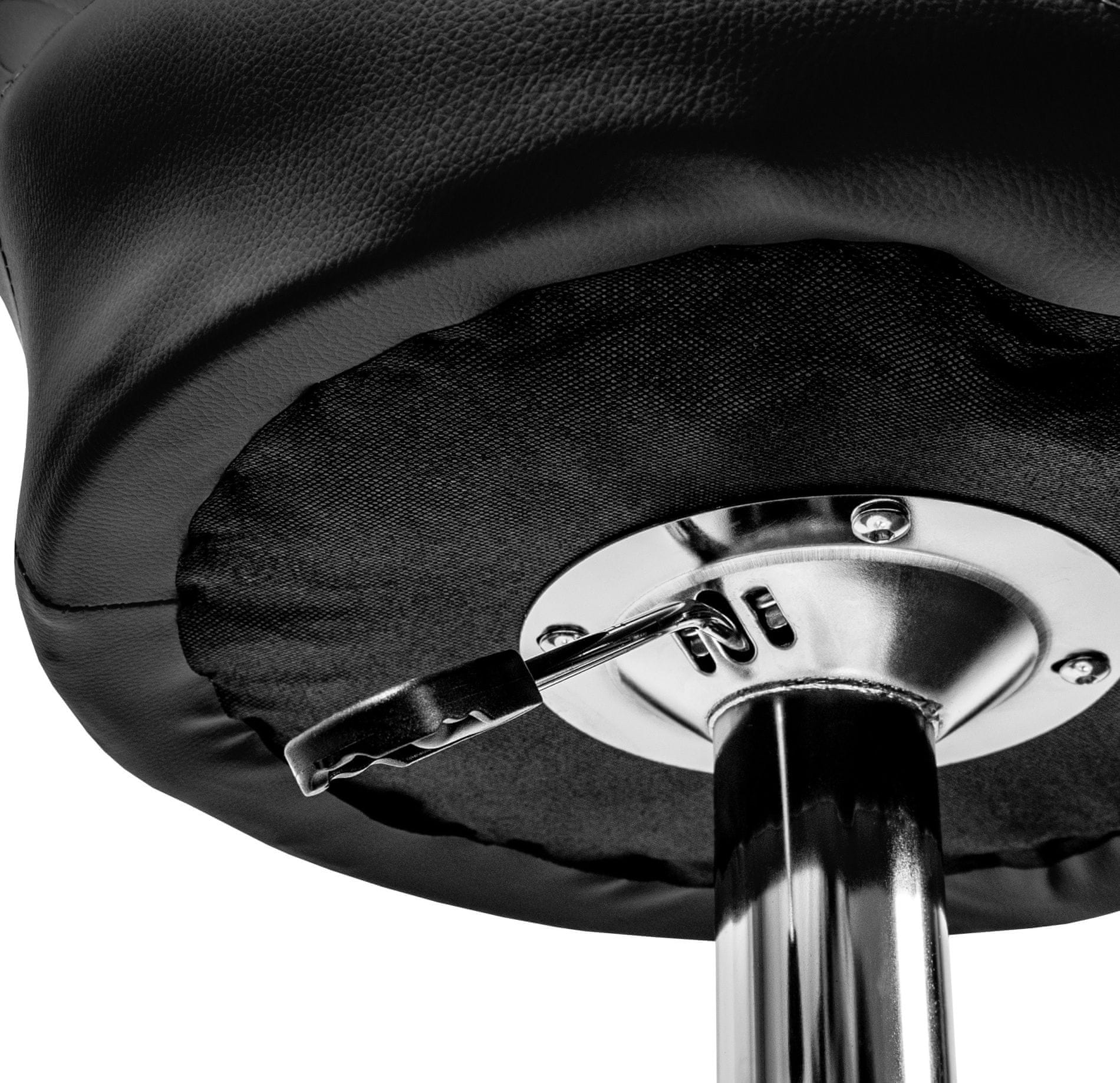 Stolica ima praktični oslonac za noge od kromiranog metala. Kružna baza i središnja noga su od kroma u sjaju.