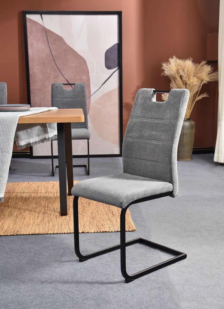 Moderna blagovaonska stolica MORANA izgledat će sjajno u vašoj blagovaonici, i donijeti joj elegantan izgled. Stolica je presvučena kvalitetnom tkaninom u klasičnoj sivoj boji pa se može kombinirati s ostalim namještajem, a za kvalitetu samog proizvoda pobrinut će se metalne noge.