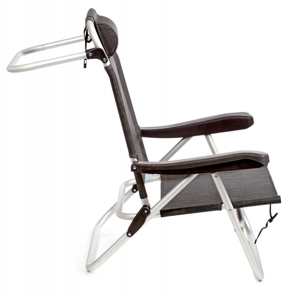 Aluminijska stolica za plažu s naslonom za leđa u 4 razine i jastukom za vrat za dodatnu udobnost. Nosivosti je 110 kg i lako se prenosi.