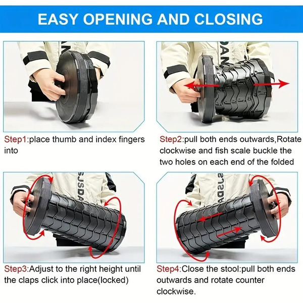 Postavljanje u jednoj sekundi – Zaboravite na komplicirano postavljanje prijenosnih stolica. FOLDYSEAT je dizajniran tako da ga samo okrenete, povučete i možete sjesti!