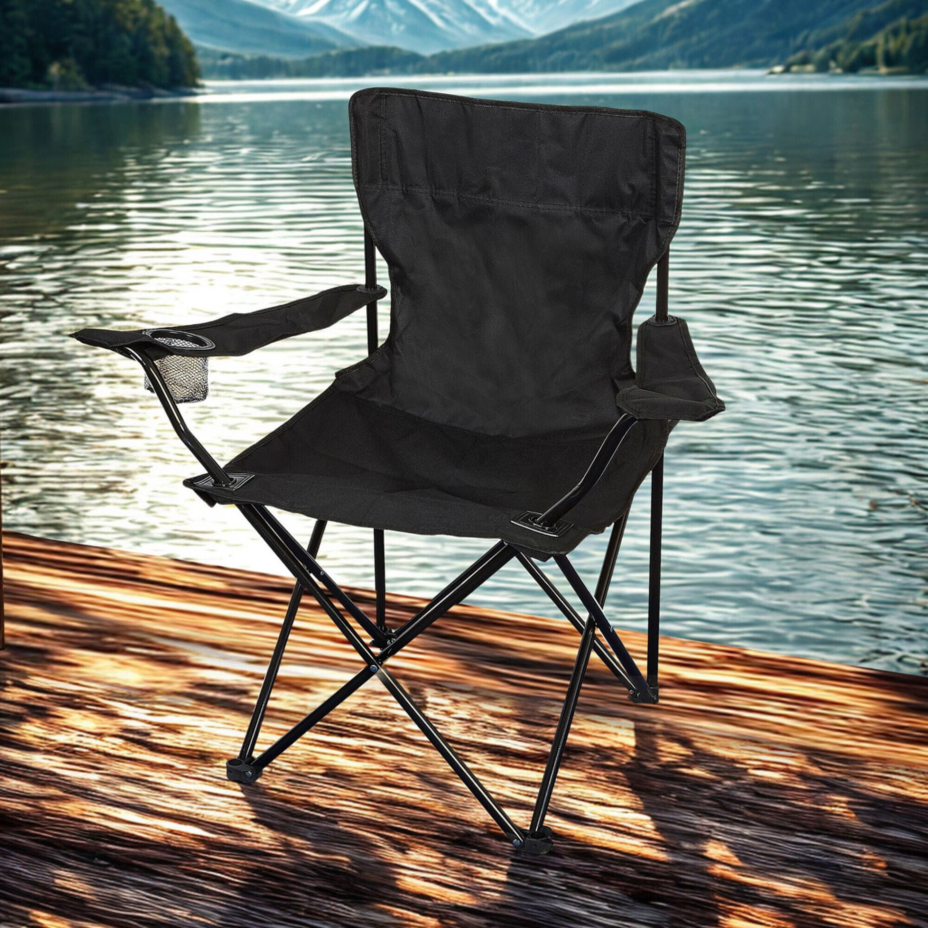 Sklopiva stolica s naslonima za ruke ne samo za ribolovce, idealna i za kampiranje, ali sigurno će pronaći svoju upotrebu i kod modelara, vikendaša i vlasnika vikendica.