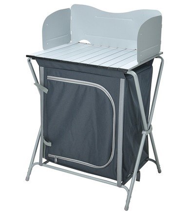 Zahvaljujući ovom sklopivom kuhinjskom elementu, možete kuhati u potpunoj udobnosti tijekom kampiranja. Radna ploča nudi prostor za potpunu pripremu obroka. Ispod radne ploče nalaze se 2 pretinca u.