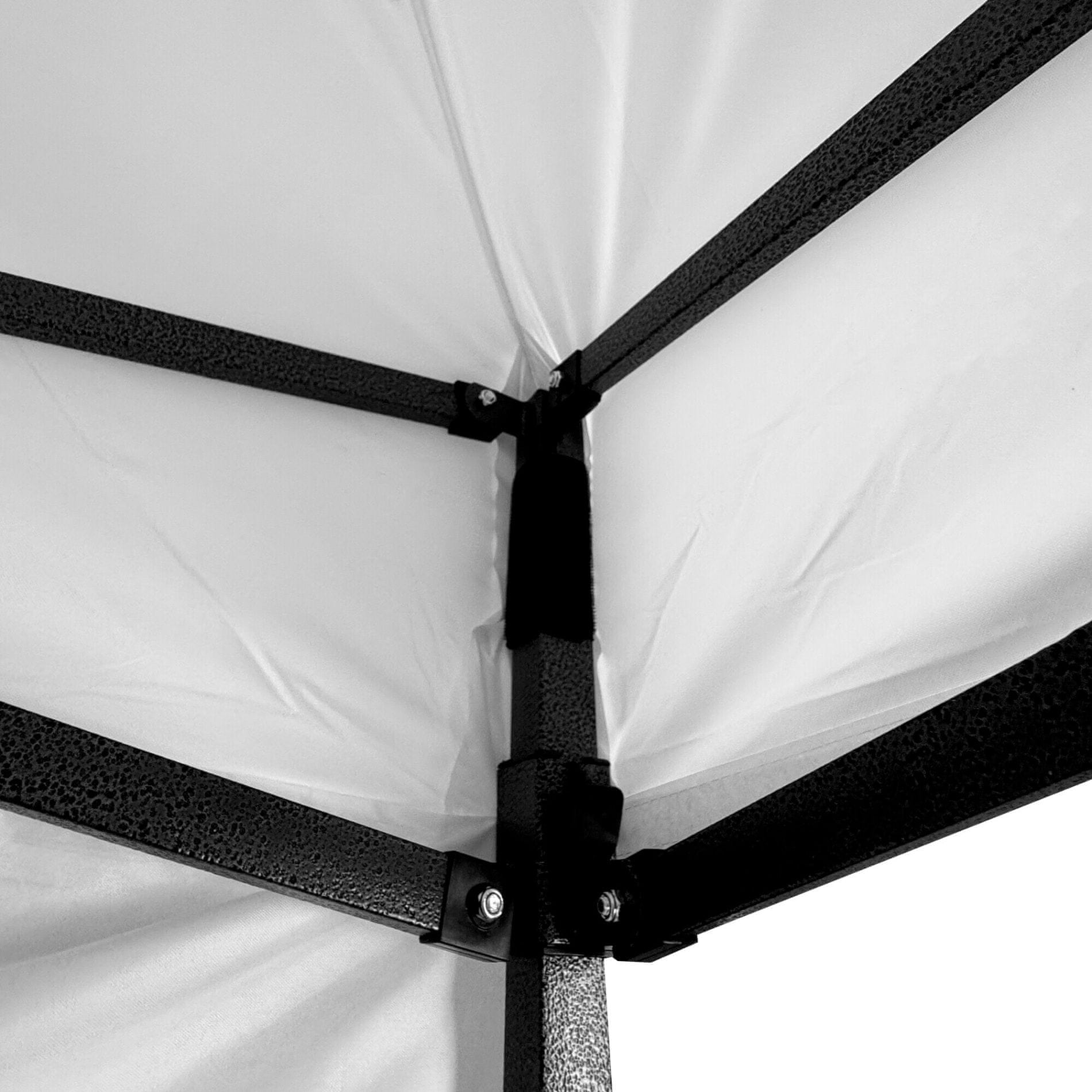 U ovom modelu je dodatna središnja noga smještena u sredini konstrukcije, koja pruža dodatnu potporu cijeloj površini. Zahvaljujući tome, okvir je stabilan čak i pri većem opterećenju, a istovremeno se sprječava savijanje krova na tako velikoj površini. Svaka noga završava stopalom s mogućnošću učvršćivanja u zemlju, što značajno povećava ukupnu stabilnost štanda čak i u zahtjevnijim uvjetima.