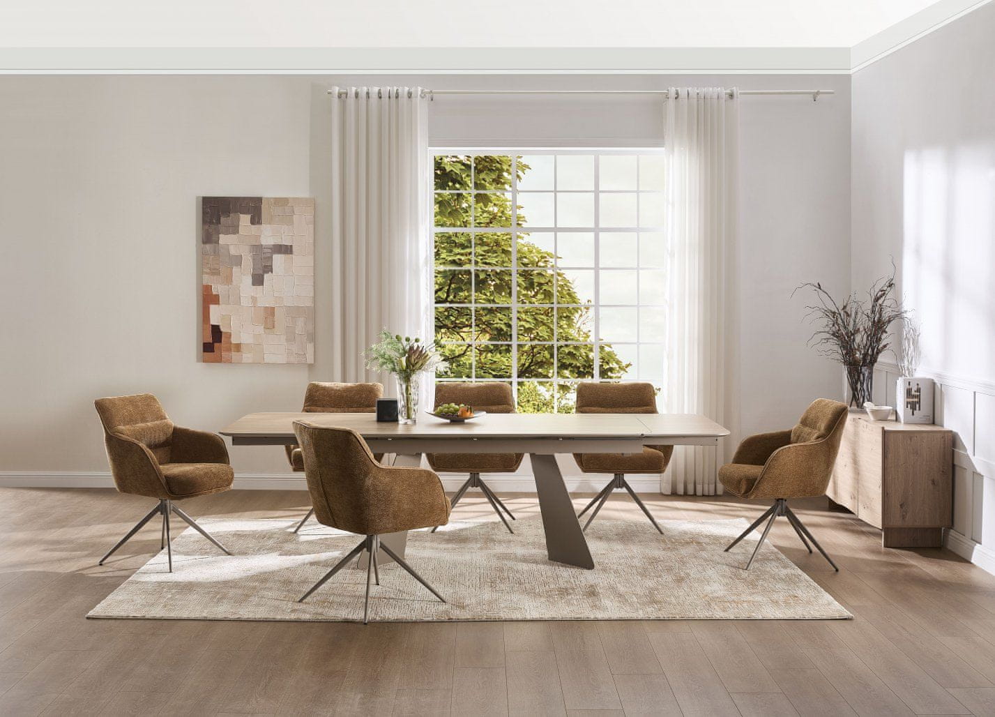 Tapecirana blagovaonska stolica MINE (smeđa) unosi sofisticiranost i udobnost u vašu blagovaonicu. Kvalitetna tkanina i čvrsta metalna konstrukcija čine ovu stolicu savršenim izborom za svaki dom.