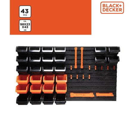 Black+Decker set za pohranu/organizaciju alata, 43 dijela, različite veličine ladica, jednostavno sastavljanje, jednostavno sortiranje/pristup, crna, narančasta