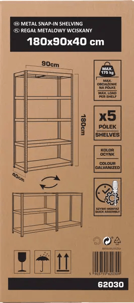 Robusna pocinčana jedinica s 5 polica i ukupnom nosivošću od 875 kg (175 kg po polici).