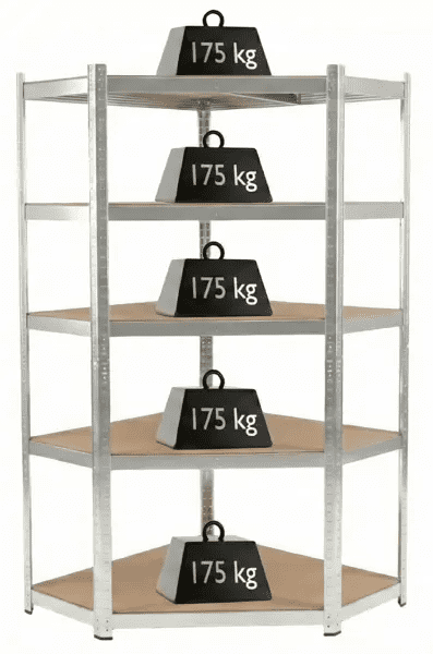 Posebno dizajnirane police za potpuno korištenje kutova s 5 polica i ukupnom nosivošću od 875 kg (175 kg po polici).