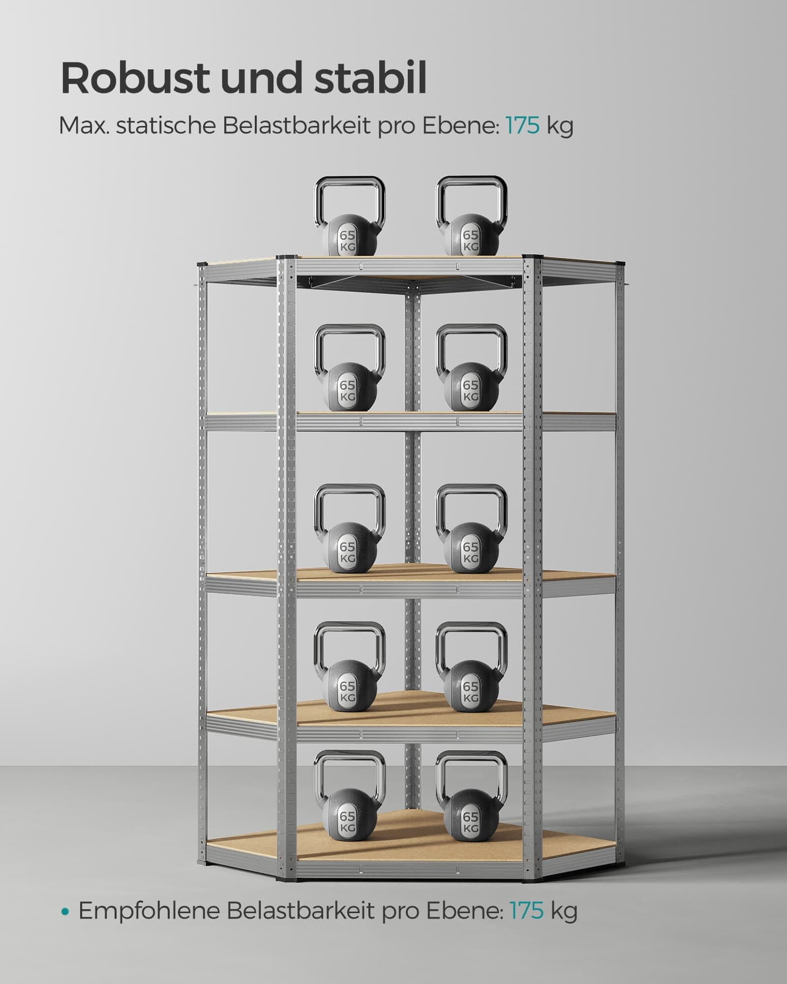 Ovaj kutni regal dizajniran je za pružanje robusnih i učinkovitih rješenja za pohranu u garažama pomoćnim prostorijama ili podrumima. Njegova čvrsta konstrukcija čini ga idealnim za organizaciju teških predmeta i maksimalno iskorištavanje prostora u kutovima. Sustav polica pogodan je za stambene i komercijalne prostore gdje su potrebna trajnost i velika nosivost.