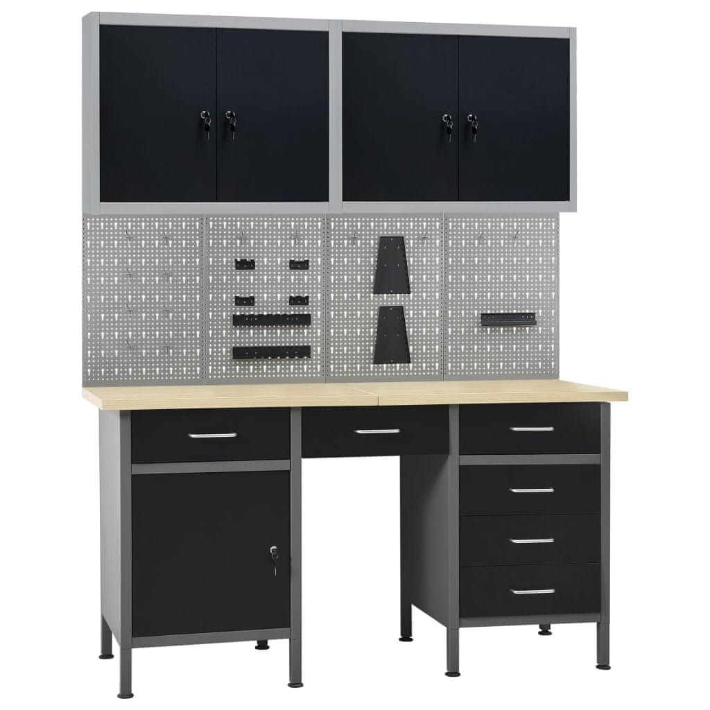 Ovaj set sastoji se od 1 radnog stola, 4 zidne ploče i 2 zidna ormarića, zbog čega će biti praktično rješenje za pohranu za vašu radionicu i garažu.