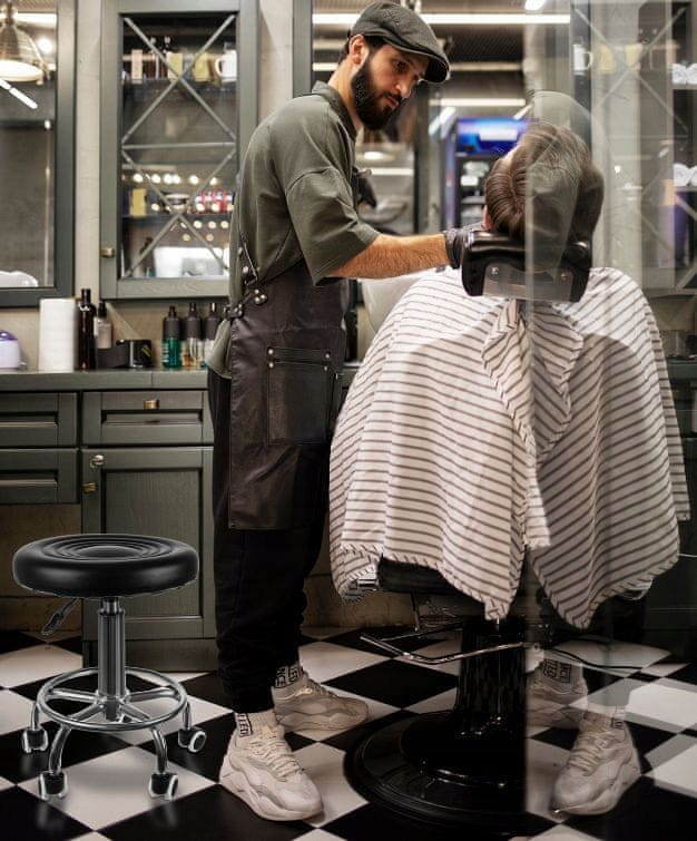 Malatec Podesiva okretna kožna frizerska stolica crna - mekani kotači