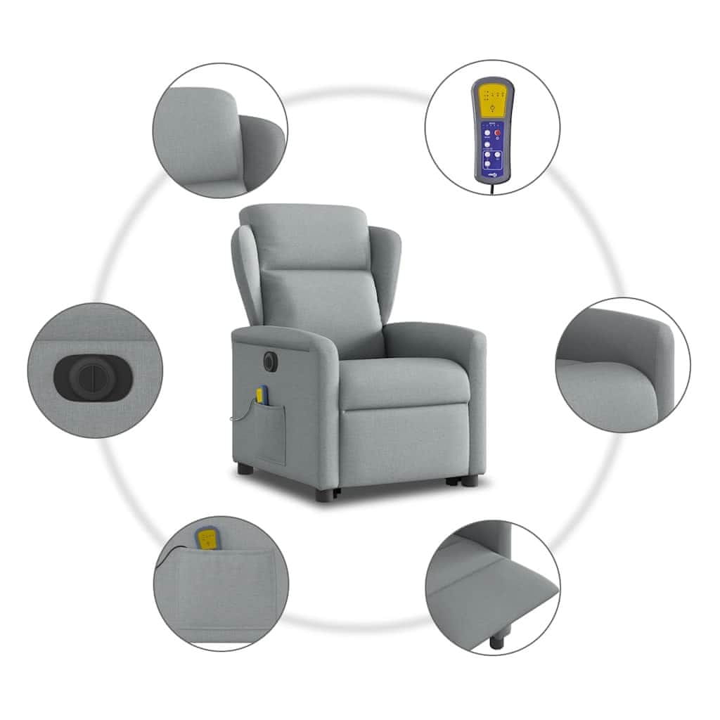 Vidaxl Električni masažni naslonjač na podizanje tkanina svjetlosivi