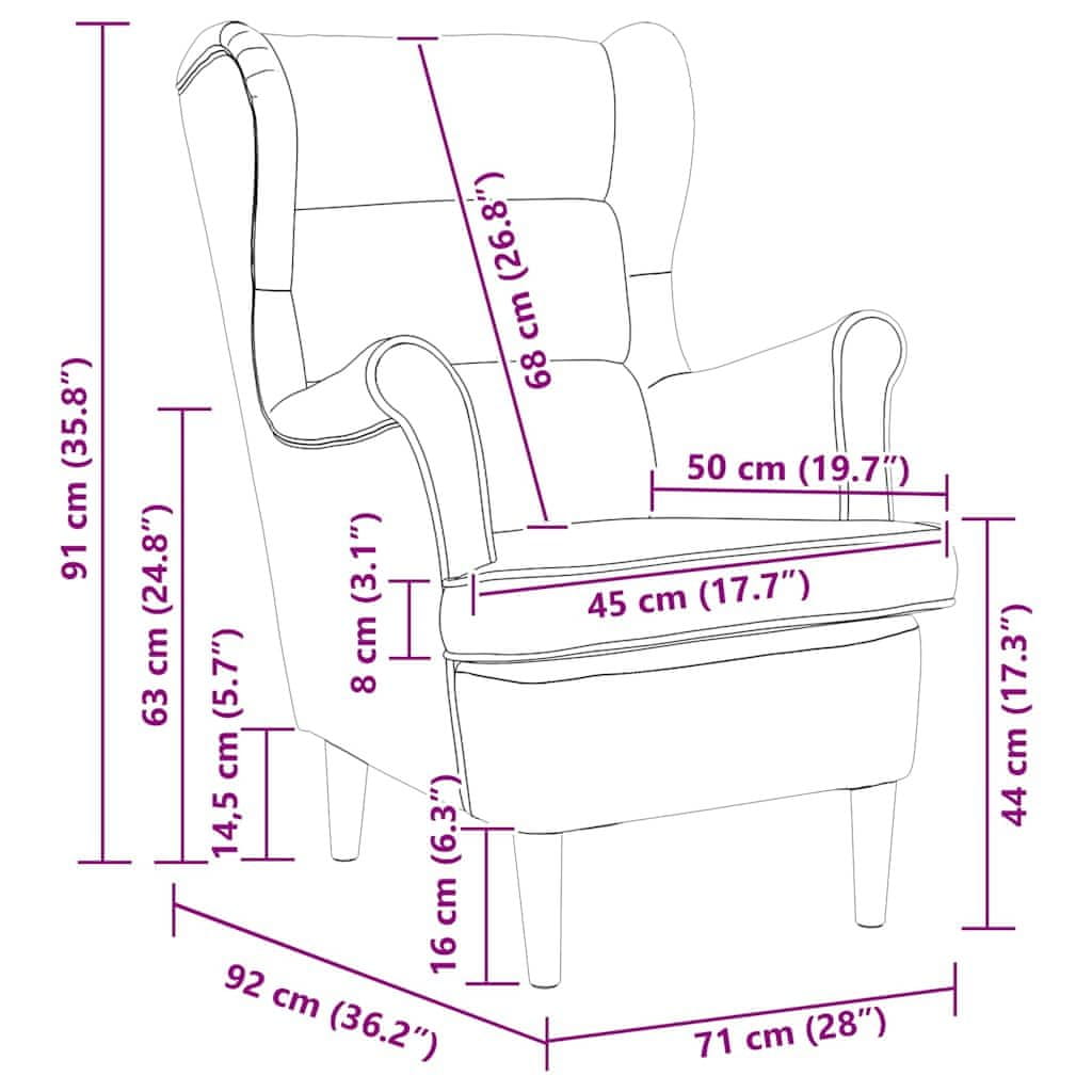 Fotelja je presvučena baršunom, zbog čega je mekana na dodir i izdržljiva. Okvir od šperploče osigurava stabilnost. Podstavljeni naslon za leđa i sjedalo također vam nude udobno sjedenje.