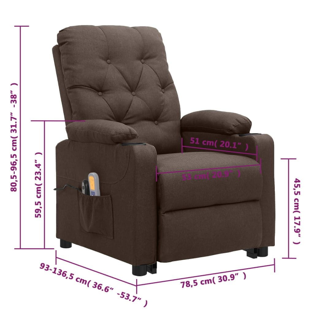 Vidaxl Masažna fotelja na podizanje od tkanine smeđa