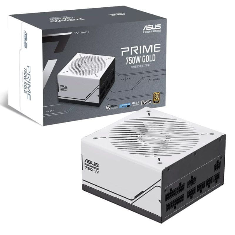 ASUS Prime AP-750G je ATX napajanje od 750 W visoke učinkovitosti (80 Plus Gold) i ATX 3.0 kompatibilnosti. Opremljen je ventilatorom s dvostrukim kugličnim ležajem za dug život i setom modernih konektora, uključujući PCIe Gen 5.0 kabel.