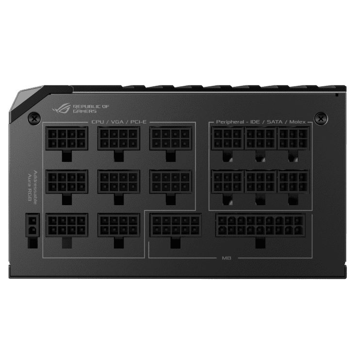 ROG Thor 1200W Platinum napajanje dizajnirano je za entuzijaste koji zahtijevaju najbolje. Ima 80 PLUS Platinum certifikat za vrhunsku učinkovitost i koristi japanske kondenzatore za stabilnost. Hlađenje osigurava 135 mm Wing-blade ventilator s IP5X zaštitom od prašine, koji koristi 0dB tehnologiju kako bi osigurao potpuno tihi rad pri niskim opterećenjima. Integrirani ROG hladnjaci osiguravaju niže temperature komponenti.