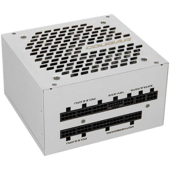 COUGAR GEX 850W Snow modularno napajanje u elegantnoj snježno bijeloj boji može se pohvaliti 80 PLUS Gold certifikatom i učinkovitošću do 91%. S izuzetno kompaktnom duljinom od samo 140 mm, tihim 120 mm HDB ventilatorom i visokokvalitetnim japanskim kondenzatorima od 105°C.