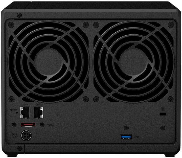 DS920 + NAS poslužitelj za 4 diska (najviše 9 diskova s opcionalnim nosačima diska). Kompaktno je rješenje za prijenos podataka i upravljanje multimedijom. Između ostalog, opremljen je s dva utora za M.2 SSD pogone, a tehnologija SSD Cache omogućuje povećanje sustava i kapaciteta aplikacije. Pogodan je za mala i srednja poduzeća.