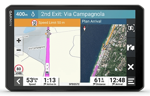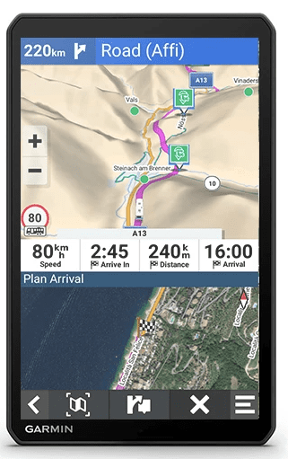 Veliki i transparentni GPS zaslon uređaja proteže se od ruba do ruba i omogućuje upravljanje dodirom. Omogućuje jednostavno pregledavanje važnih informacija.