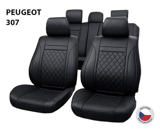 Navlake za autosjedala Perfetto za Peugeot 307, poluspecijal. Eko koža + pjena (0,5 cm), za nedjeljiva i djeljiva stražnja sjedala. Uključeni nasloni za glavu, homologirano za bočne zračne jastuke. Pogodno za stražnji naslon za ruku i 3. sigurnosni pojas. Cijeli opis