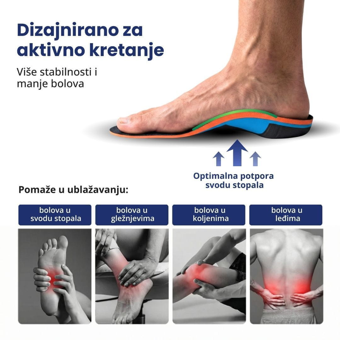- Podrška za luk: Pomaže u poravnanju stopala i tijela, poboljšava držanje i smanjuje opterećenje zglobova.
