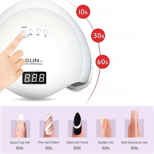 S 3 postavke timera (10s, 30s, 60s), možete prilagoditi proces sušenja prema vrsti gela i osobnim potrebama. Pametni senzor automatski se uključuje kada su vaše ruke ili noge postavljene ispod lampe, osiguravajući bezbrižno iskustvo svaki put.