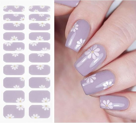 slomart JMEOWIO Folija za nokte, stvrdnjavanje UV svjetlom, bijeli cvjetovi, svijetlo ljubičasta, UV gel naljepnice za nokte, naljepnice za nokte, dekoracija za nail art, pribor za oblikovanje noktiju