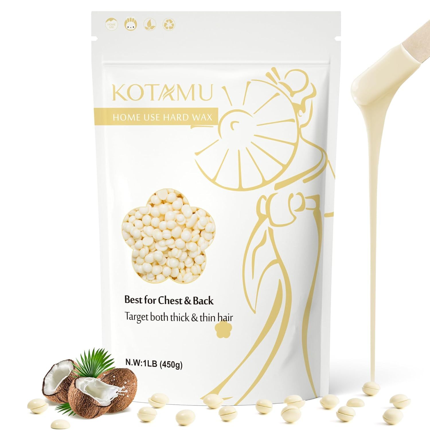 Učinkovito pri gustim i tankim dlakama: Naš kremasti tvrdi vosak sadrži prirodno kokosovo ulje, koje smanjuje iritaciju kože pri uklanjanju dlačica. Ovi voskovi su nježni prema osjetljivoj koži i ne sadrže štetne kemikalije. KOTAMU voskovi učinkovito uklanjaju guste dlake na prsima i leđima. Ekonomičan izbor za brazilsku depilaciju, naš vosak osigurava dugotrajnu glatkoću već nakon jedne uporabe | Vrhunski rezultati uklanjanja dlačica: KOTAMU tvrdi voskasti zrnci su napravljeni za savladavanje najtvrdokornijih dlačica. Ovi voskovi za uklanjanje dlačica čvrsto i učinkovito prianjaju na neželjene dlačice pri korijenu, uklanjajući neželjene grube dlake na području bikinija, prsima, brazilskoj depilaciji, leđima, nogama, rukama, pazusima, licu, trbuhu ili gotovo bilo gdje drugdje na tijelu | Glatka i jednostavna uporaba: KOTAMU tvrdi voskasti zrnci tope se na niskoj temperaturi za nježnu uporabu, što pojednostavljuje vašu pripremu. Njihova fina konzistencija osigurava vrhunsko prianjanje i osigurava cjelovito uklanjanje izravno iz korijena. Kremasta tekstura omogućuje udobno uklanjanje čak i finih, gustih dlačica i ostavlja vašu kožu svilenkastom i besprijekornom. Naši voskasti zrnci nude vam ugodno iskustvo | Rješenje za uklanjanje dlačica u salonu kod kuće: U usporedbi sa skupim salonima, naši topli voskovi za uklanjanje dlačica nude isplativu opciju za voskanje kod kuće. Pojedinačni paket može se koristiti za više sesija, što znatno smanjuje ukupne troškove voskanja. Redovita uporaba voskastih zrnaca za uklanjanje grubih dlačica također smanjuje potrebu za posjetima salonu, čime štedite dragocjeno vrijeme i novac | Jednostavno čišćenje i savršena konzistencija: KOTAMU voskovi za uklanjanje dlačica posebno su formulirani za čišćenje bez problema. Za razliku od drugih voskova, naš visokokvalitetni vosak ima idealnu teksturu koja sprječava da bude previše tekuć ili predebeo, te osigurava da se može lako ukloniti u jednom komadu, bez ostavljanja ostataka voska, i otkriva čistu, svilenkastu i meku kožu. Postignite učinak bez dlačica bez nereda s našim voskastim zrncima | Dugoročna garancija i stalna služba za korisnike: Tim KOTAMU stoji iza našeg tvrdog voska s 5-godišnjom garancijom. Naše obećanje pouzdanosti osigurava vam vrhunske performanse u godinama koje dolaze. Ako imate bilo kakvih pitanja ili niste zadovoljni našim proizvodima – voskastim zrncima za uklanjanje dlačica – ne oklijevajte i kontaktirajte nas. Uvijek smo spremni brzo odgovoriti i razjasniti vaše nedoumice.