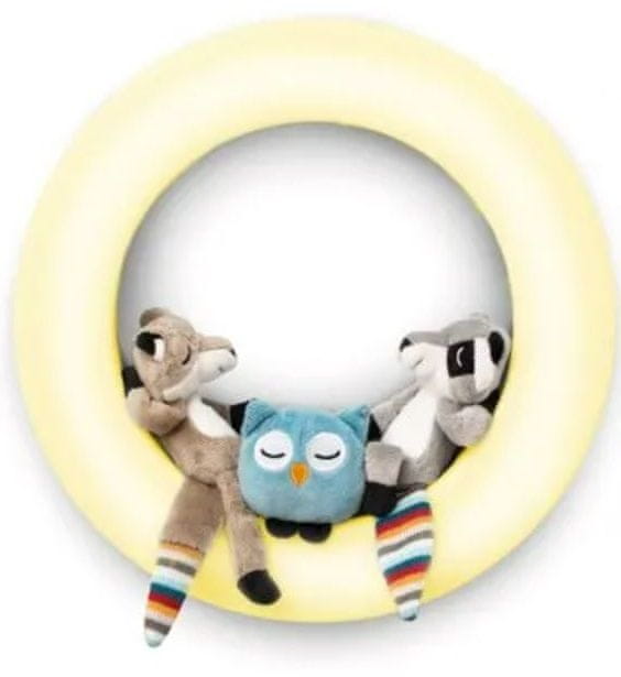 Unikatna zidna lampa za dječju sobu, ukrašena sa tri slatke magnetne plišane igračke: Fay, Rex i Otis.