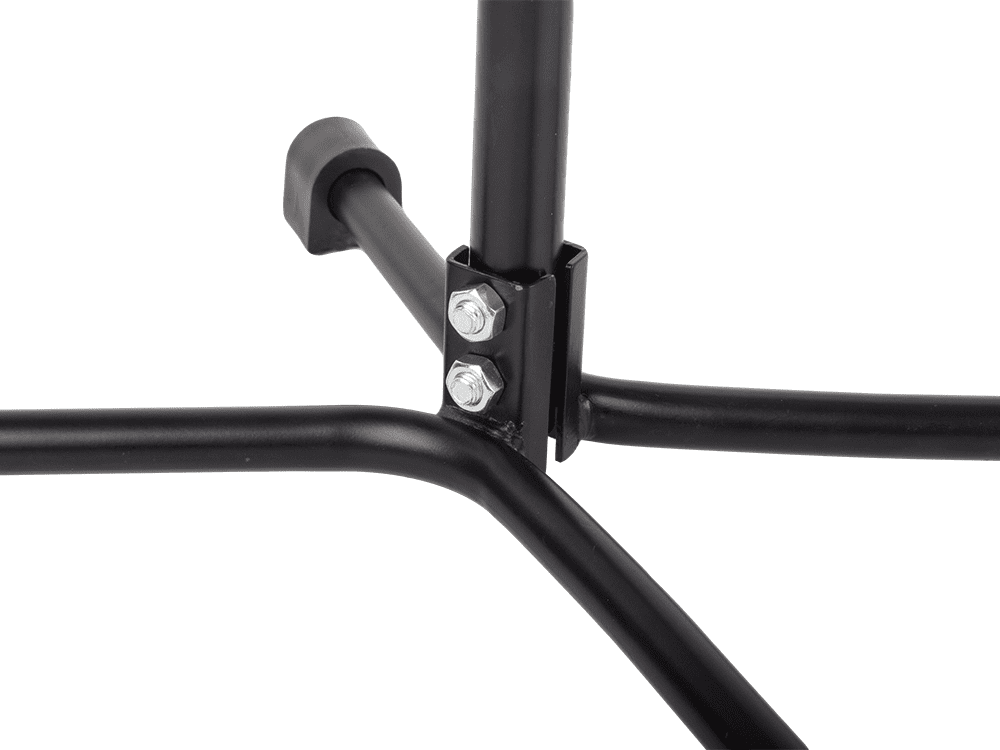 Stalak je jednostavan za postavljanje i korištenje. Zahvaljujući široko razmaknutim nogama, bicikl će na njemu stajati stabilno.