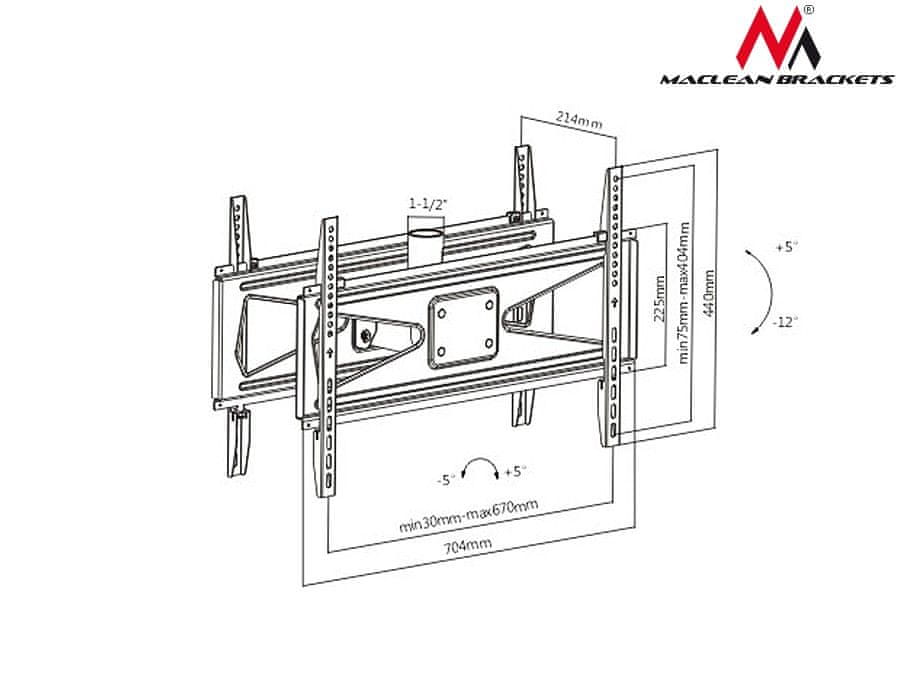 Maclean Držač Maclean, Univerzalni, Za dva televizora, Prednji/stražnji, 23-75", Max vesa 600x400, PROFI MARKET SYSTEM, Crni, 50kg, MC-703