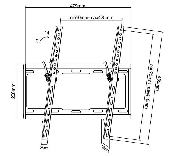 - Udaljenost od zida: 25 mm