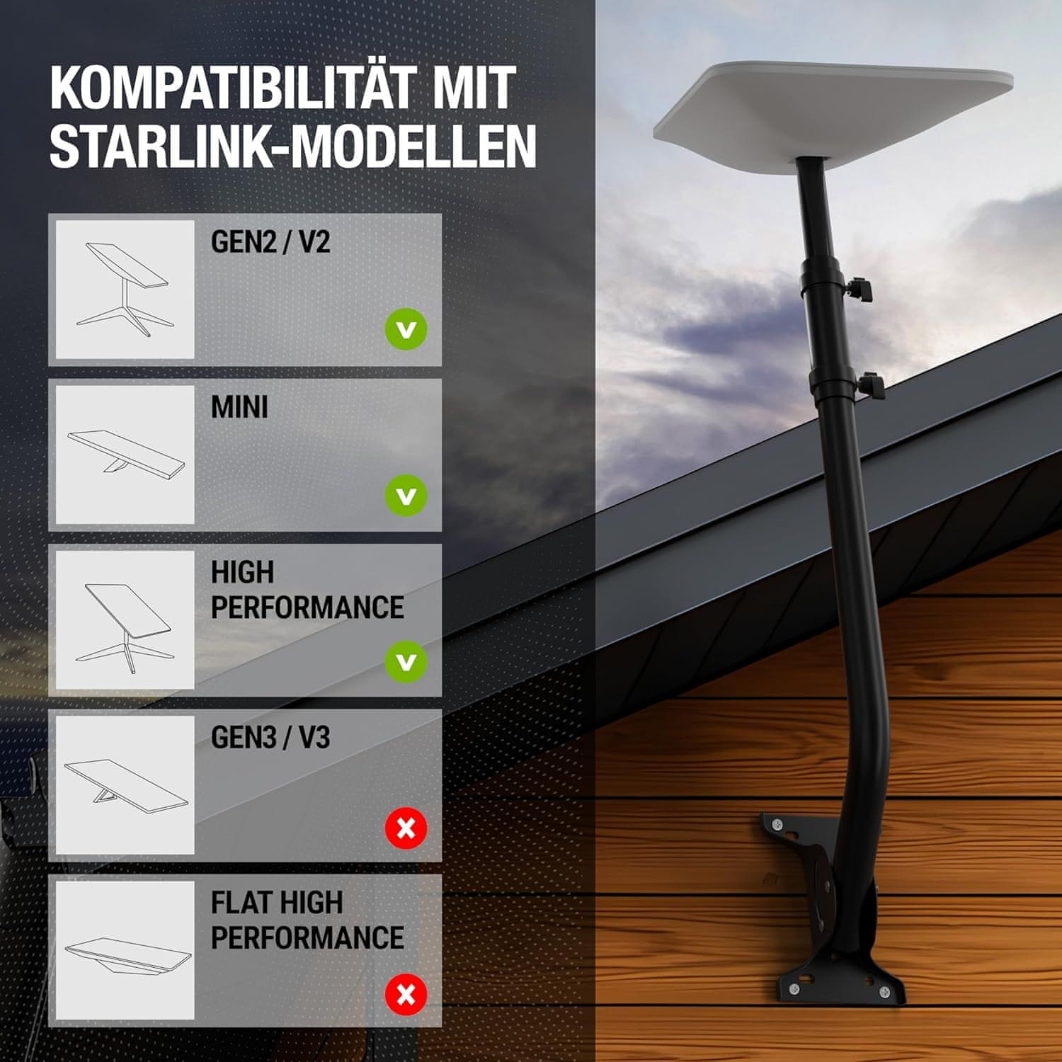 - Kompatibilnost s više verzija Starlinka: Gen2, Gen3, Mini