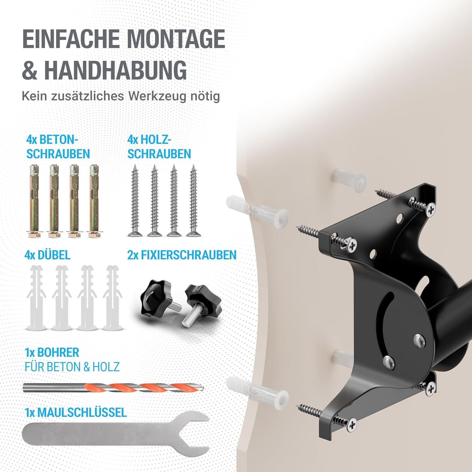 - Elementi za montažu: vijci za beton i drvo uključeni