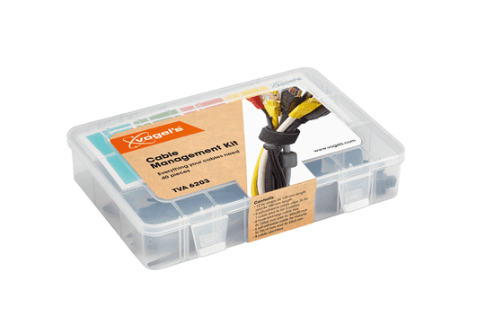 Uz dodatnu opremu u ovom TVA 6203 kompletu za upravljanje kabelima, na raspolaganju vam je niz rješenja za uredno organiziranje kabela oko vašeg TV-a. Na primjer, trake i vezice za kabele, ali i markeri za kabele koji olakšavaju držanje kabela odvojeno. Samoljepljivi blokovi za pričvršćivanje kabelskih vezica mogu se jednostavno koristiti u kombinaciji s vezicama. Zahvaljujući kompaktnoj veličini i obliku, komplet možete jednostavno pohraniti i napuniti po potrebi.