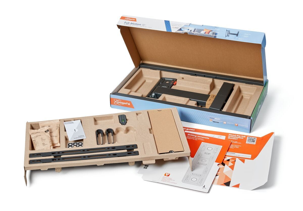 Instaliranje vašeg COMFORT Full-Motion TV zidnog nosača nije teško. Vogel's vam to vrlo olakšava. Šablon za bušenje, vijci, Fischer® DuoPower utikači, kabelska vezica i libela su uključeni u pakiranje. Jednostavno označite prvu izbušenu rupu s našom besplatnom aplikacijom DrillRight™ AR, a Vodič za brzu instalaciju objašnjava korak po korak kako sve instalirati. Također možete pogledati detaljni priručnik i poseban video za instalaciju na internetu.
