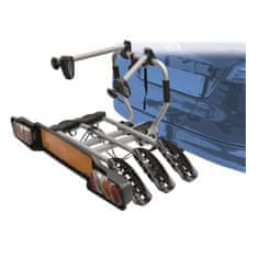 Nosač kuke za vuču zahtijeva da kotači budu smješteni u utore na pločastim nosačima i pričvršćeni trakama. Prtljažnik je dostupan pomoću sklopivog mehanizma. Stezanje je jednostavno. Loša strana je veća opasnost da se kotači zaprljaju tijekom transporta. Montaža je također nešto zahtjevnija.