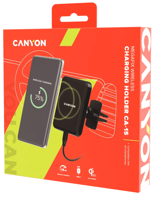 Canyon Megafix CA-15 magnetski nosač za automobil, bežično punjenje, crna (CNE-CCA15B)