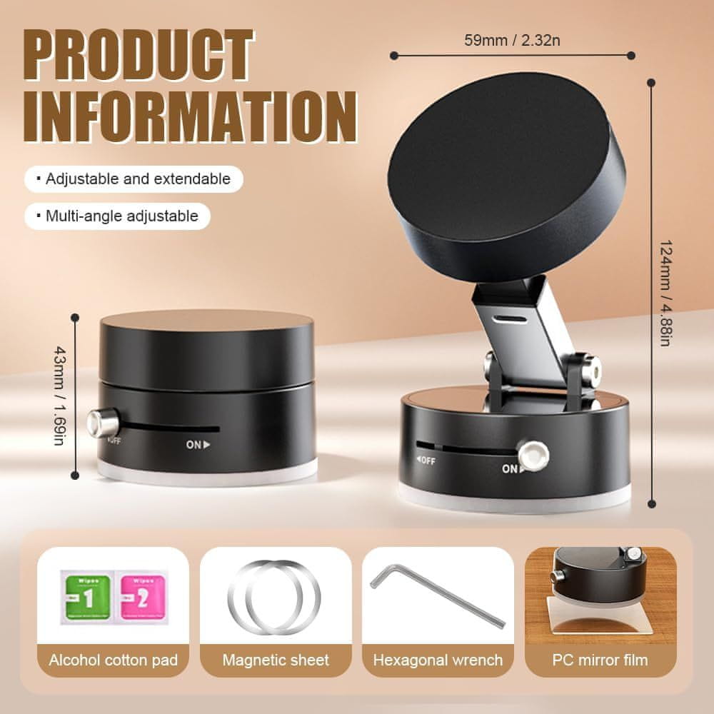 Netscroll Univerzalni magnetni držač za telefon s vakuumskim pričvršćivanjem, dvoosni nagib, snažan magnet, kompaktan i prijenosan, za auto, kuhinju, ured, u paketu, RingMag