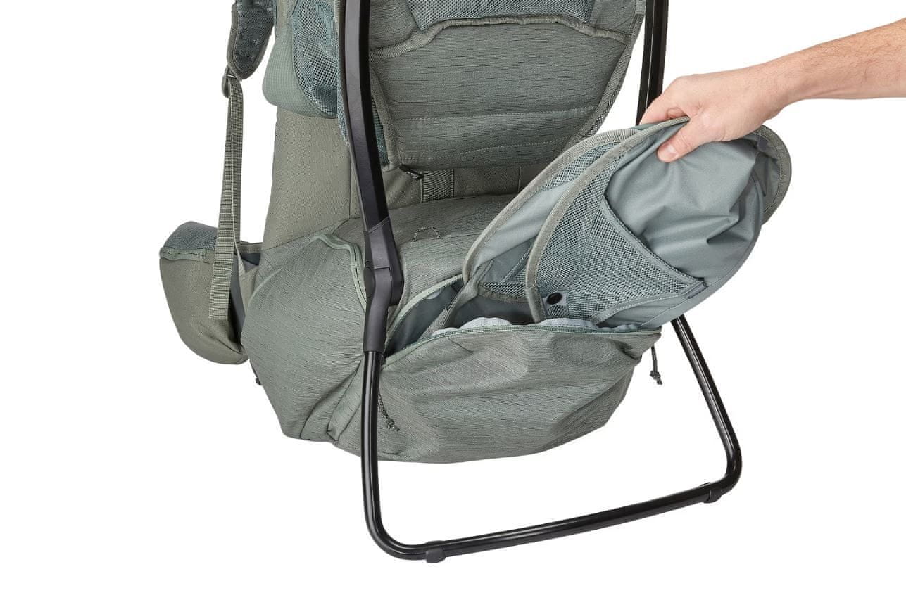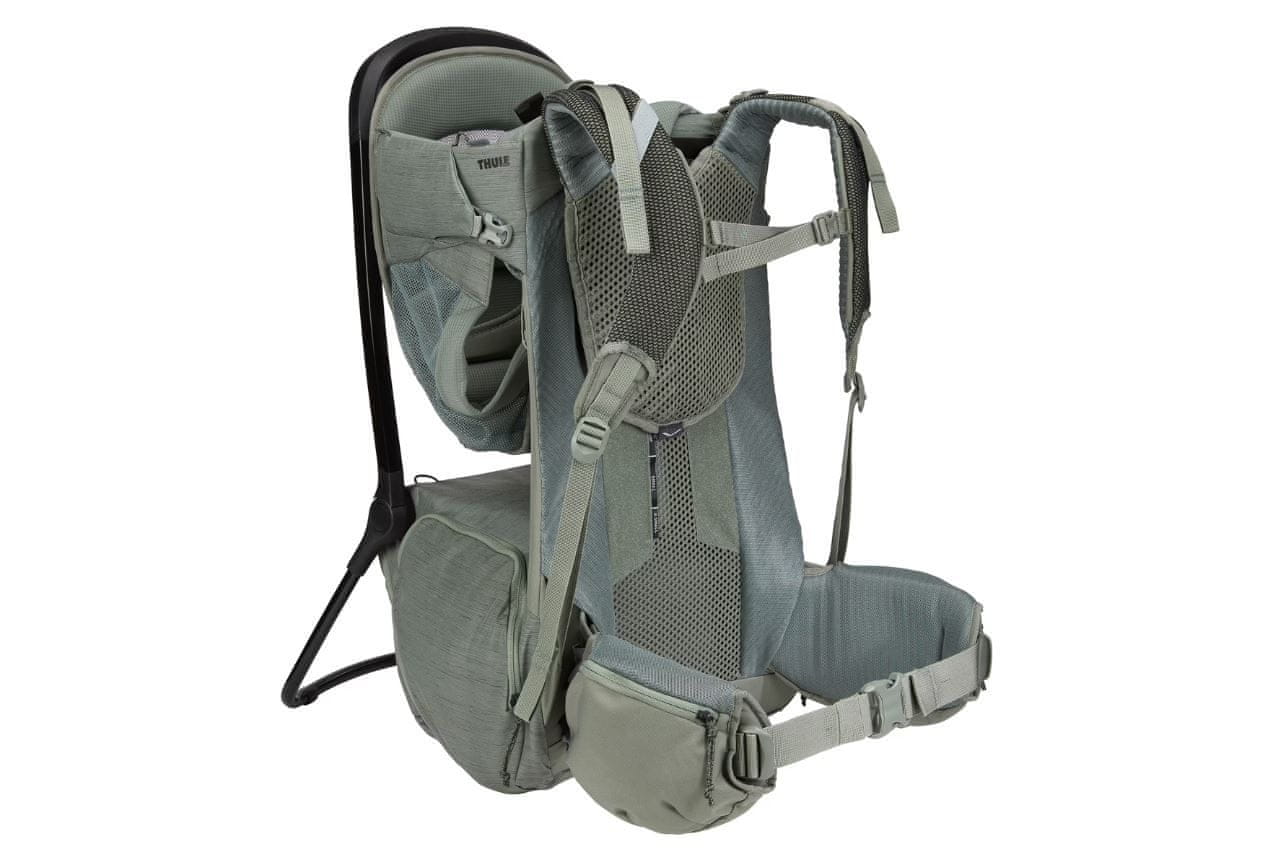 Jedinstveni sustav potpore ErgoRide pruža udobnost i jednostavnost korištenja. Sustav pruža maksimalnu udobnost djetetu, a vama omogućuje slobodu kretanja. Uz tradicionalnu potporu ispod djetetovog donjeg dijela, ErgoRide pruža proširenu potporu prema gore ispod djetetovih stopala, za bolju raspodjelu djetetove težine. Ruksak za nošenje bebe Thule Sapling ima otvoren i prozračan osjećaj koji pomaže optimizirati težinu i pruža odgovarajuću ventilaciju tijekom vrućih ljetnih dana.