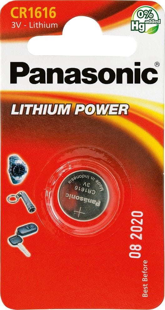 Baterija Panasonic CR1616 je namjenjena za napajanje ručnih satova, kalkulatora, daljinskih itd. Kapacitet baterije je 55 mAh, napon 3 V.