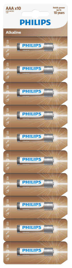 Philips nudi baterije s dugim vijekom trajanja i pouzdanim napajanjem za svakodnevne uređaje kao što su satovi i radio. Njihove početne alkalne baterije pružaju veliku vrijednost za osnovne potrebe. Philipsova alkalna tehnologija s vrhunskim performansama idealna je za uređaje koji zahtijevaju puno energije. Philipsove alkalne baterije su tri puta bolje od prosječnih cink-karbonskih baterija. Osim toga, ove baterije ostaju svježe za korištenje i do 10 godina, osiguravajući da su spremne kada ih trebate.