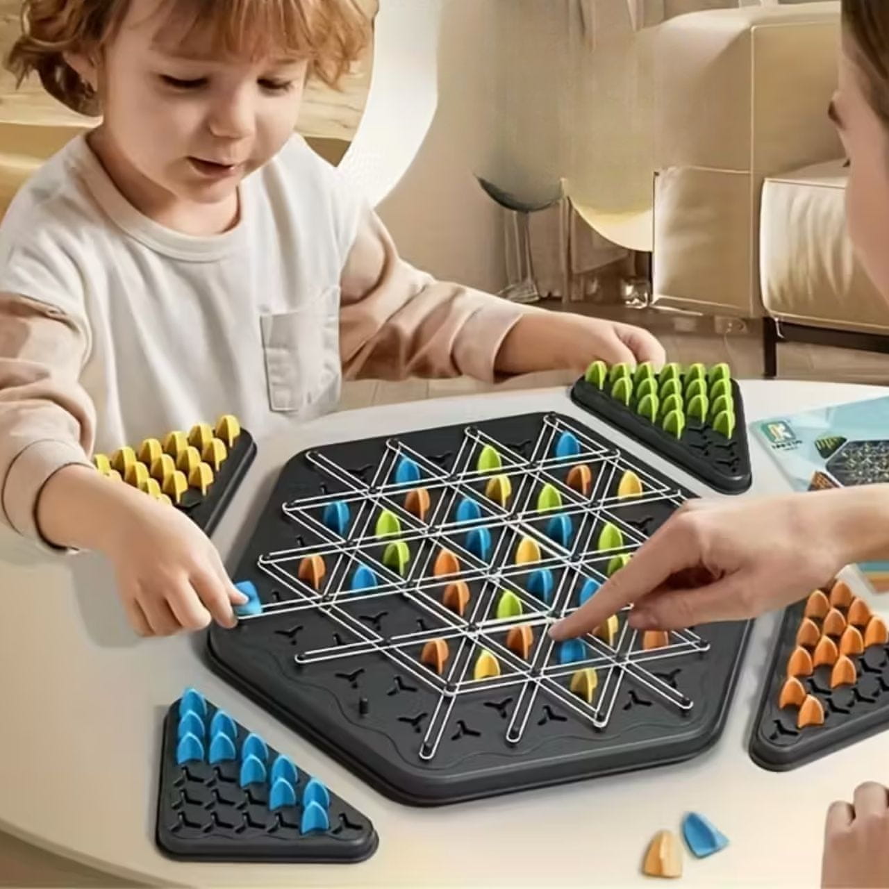 Svaki igrač dobiva gumene trake i pokušava oblikovati trokute tako da povezuje četiri stupa. U svaki trokut stavlja se figurica. Pobjeđuje onaj koji prvi potroši sve svoje figurice. Jednostavna, ali strateški izazovna igra koja potiče logiku i koordinaciju.