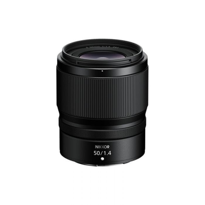 Objektiv Nikkor Z sa žarišnom duljinom od 50 mm omogućuje brzo automatsko fokusiranje, glatko zamućenje pozadine i jasno snimanje čak i pri slabom osvjetljenju. Otvor blende f/1.4 omogućuje iznimnu fleksibilnost pri snimanju s dostupnim svjetlom pri nižim ISO postavkama. Navoj filtera je 62 mm.