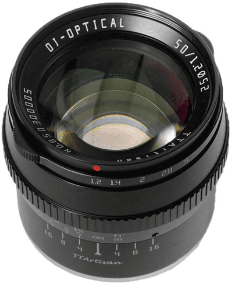 Standardni objektiv TTArtisan 50mm F/1.2 ima optičku strukturu od 7 elemenata u 5 grupa. Minimalna udaljenost fokusa je samo 50 cm, a otvor blende ima 10 lamela koje omogućuju glatko bokeh. Veliki otvor blende od F1.2 eliminira neprozirne pozadine i ističe subjekt dok nudi izvrsnu kontrolu nad dubinskom oštrinom. S ovim objektivom možete snimati i pri slabom svjetlu. Objektiv je specijaliziran za portrete, a uz veliki otvor blende F1.2 lako postiže estetski efekt zamućenja. Objektiv koristi Sonnar optički dizajn koji naglašava oštrinu i ima nisku distorziju za jasno i precizno prikazivanje. Pogodan je za fotoaparate bez ogledala sa Sony E bajonetom.