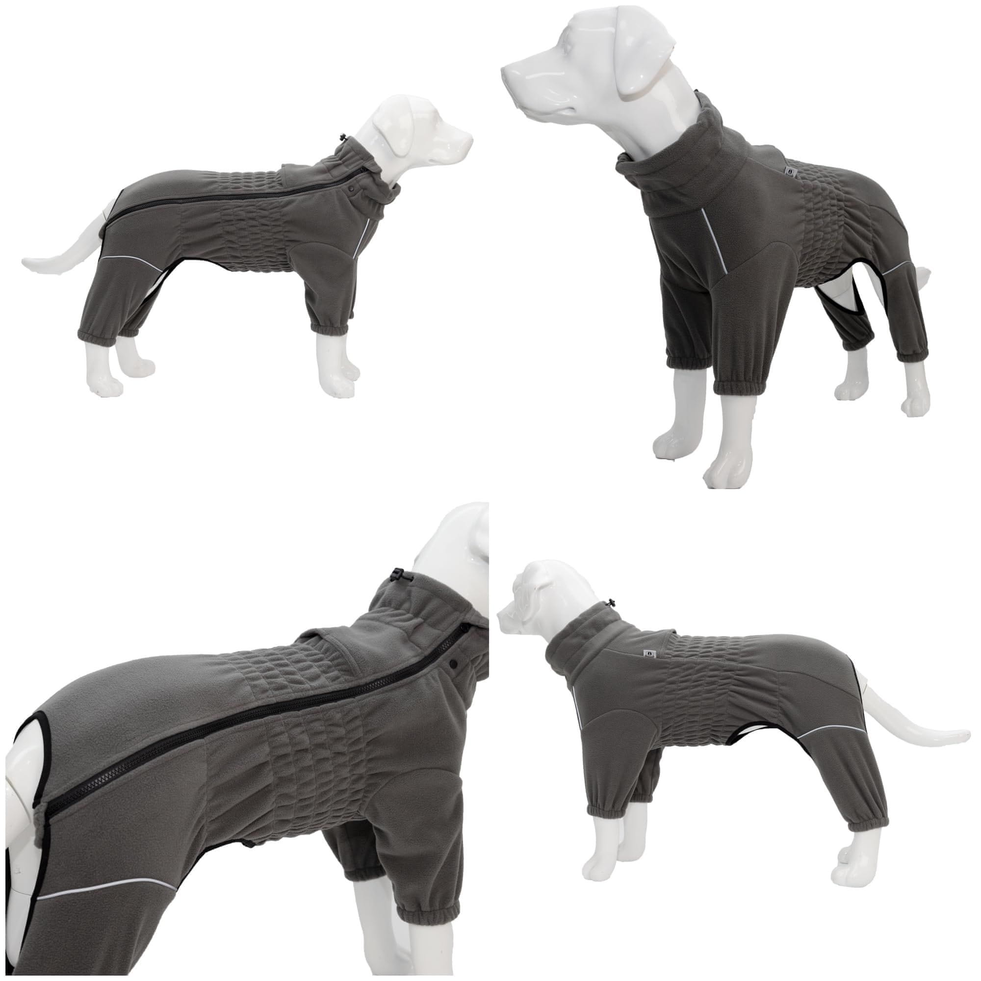 Nikcorp Topla zimska jakna za pse s flisom i reflektirajućim trakama, siva 3XL, vjetrootporna odjeća s 4 nogavice