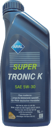 Premium sintetičko ulje za visokoučinkovite benzinske i diesel motore njemačkih proizvođača: VW (također Škoda i SEAT), Audi, Mercedes, BMW, namijenjeno produljenom servisnom intervalu. Aral Super Tronic ispunjava najviše zahtjeve za zaštitu od trošenja pokretnih dijelova i produljuje vijek trajanja filtra čestica.