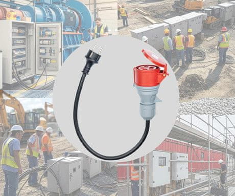 Kabel ima SCHUKO utikač (230V 16A) s jedne strane i crveni CEE utikač (16A, 3-fazni) s druge strane, što izuzetno olakšava spajanje adaptera na punjač i utičnicu, kako kod kuće tako i u pokretu.
