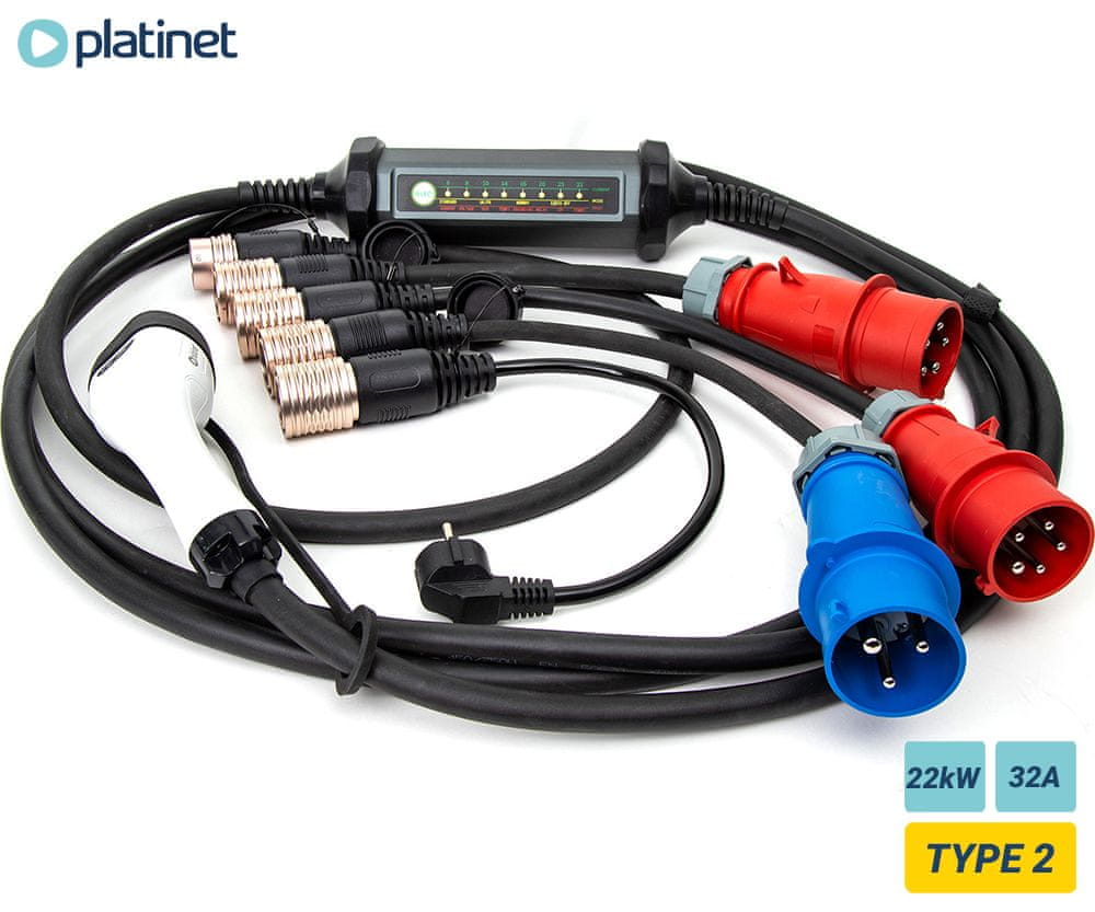 Prijenosni auto punjač Platinet PC060 ima utikač TYPE 2 za spajanje na vozilo koji je standardan za cijelu Europsku uniju i sve priključke. Opremljen naprednom tehnologijom, nudi visoku brzinu punjenja do 22kW, bez ugrožavanja sigurnosti i učinkovitosti.