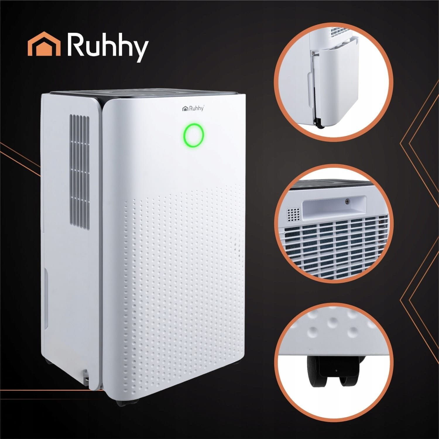 RUHHY Ovo je pravi majstor odvlaživača zraka, idealan za velike prostorije od oko 30 m². Zahvaljujući automatskom načinu rada, timeru i Wi-Fi kontroli, lako možete održavati optimalnu razinu vlažnosti. Zahvaljujući tihom radu (38 dB), kompaktnoj veličini i značajkama poput automatskog odmrzavanja, ovaj uređaj je prikladan za spavaće sobe, podrume i pomoćne prostorije.