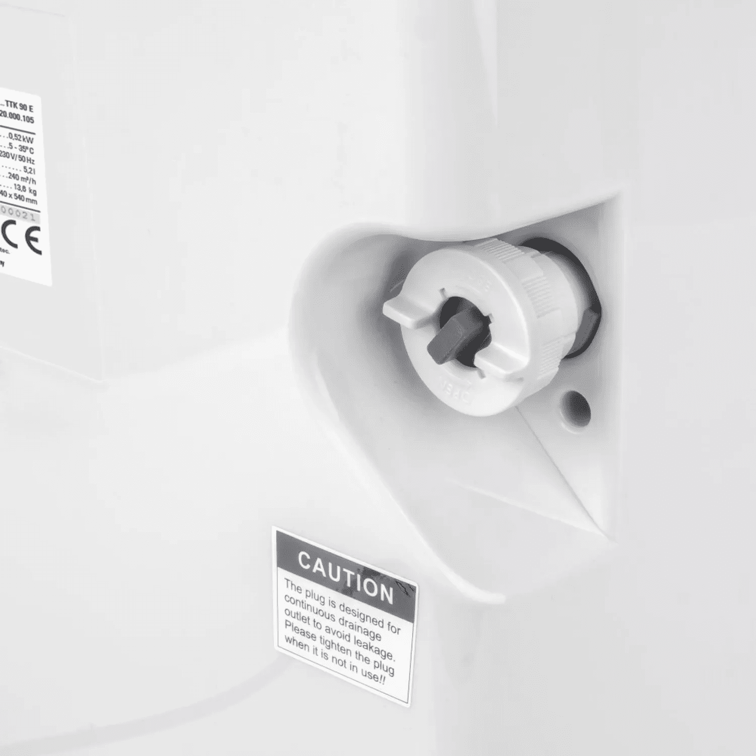 Kondenzat možete ispustiti izravno uz pomoć ugrađenog priključka za crijevo. Odvlaživač je opremljen svjetlom za upozorenje o punosti koje označava pun spremnik vode. Ima sustav protiv izlijevanja s automatskim isključivanjem i filtar za zrak koji je lako dostupan i koji se lako čisti.